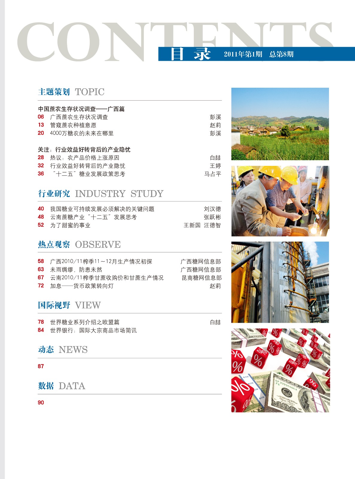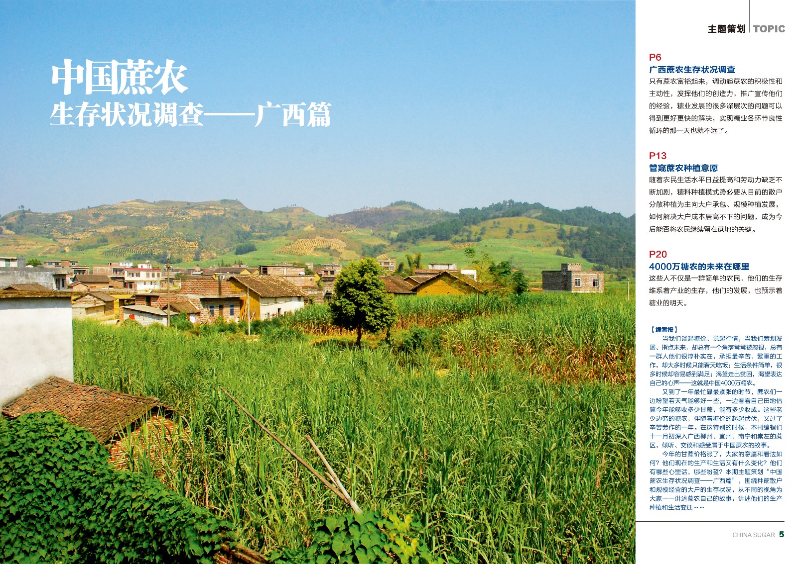 《中國糖業(yè)》由中國糖業(yè)協(xié)會主辦,是面向各級政府主管部門、中國糖業(yè)協(xié)會會員單位的內(nèi)部刊物。《中國糖業(yè)》為雙月刊,以正確引導(dǎo)輿論方向,提供信息服務(wù)為宗旨,深入剖析評介行業(yè)發(fā)展趨勢、企業(yè)的改革與管理、糖業(yè)宏觀政策和產(chǎn)業(yè)未來規(guī)劃、行業(yè)重大熱點問題,并及時發(fā)布國際國內(nèi)市場動態(tài)、通報協(xié)會工作等,力爭通過形式多樣的深度報道,更具專業(yè)性、權(quán)威性、前瞻性的分析文章,引領(lǐng)廣大讀者及時、快捷的掌握行業(yè)動態(tài)和發(fā)展趨勢。為行業(yè)參與各方搭建信息溝通的橋梁,并為其提供全面、細(xì)致、專業(yè)、權(quán)威的信息服務(wù)。