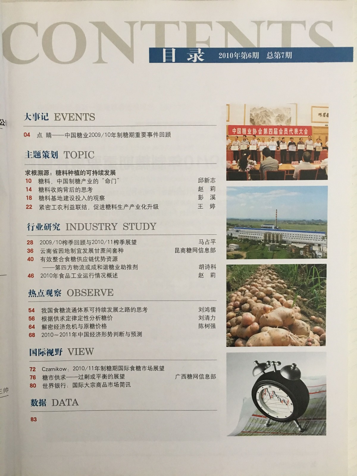 《中國(guó)糖業(yè)》由中國(guó)糖業(yè)協(xié)會(huì)主辦,是面向各級(jí)政府主管部門、中國(guó)糖業(yè)協(xié)會(huì)會(huì)員單位的內(nèi)部刊物。《中國(guó)糖業(yè)》為雙月刊,以正確引導(dǎo)輿論方向,提供信息服務(wù)為宗旨,深入剖析評(píng)介行業(yè)發(fā)展趨勢(shì)、企業(yè)的改革與管理、糖業(yè)宏觀政策和產(chǎn)業(yè)未來規(guī)劃、行業(yè)重大熱點(diǎn)問題,并及時(shí)發(fā)布國(guó)際國(guó)內(nèi)市場(chǎng)動(dòng)態(tài)、通報(bào)協(xié)會(huì)工作等,力爭(zhēng)通過形式多樣的深度報(bào)道,更具專業(yè)性、權(quán)威性、前瞻性的分析文章,引領(lǐng)廣大讀者及時(shí)、快捷的掌握行業(yè)動(dòng)態(tài)和發(fā)展趨勢(shì)。為行業(yè)參與各方搭建信息溝通的橋梁,并為其提供全面、細(xì)致、專業(yè)、權(quán)威的信息服務(wù)。