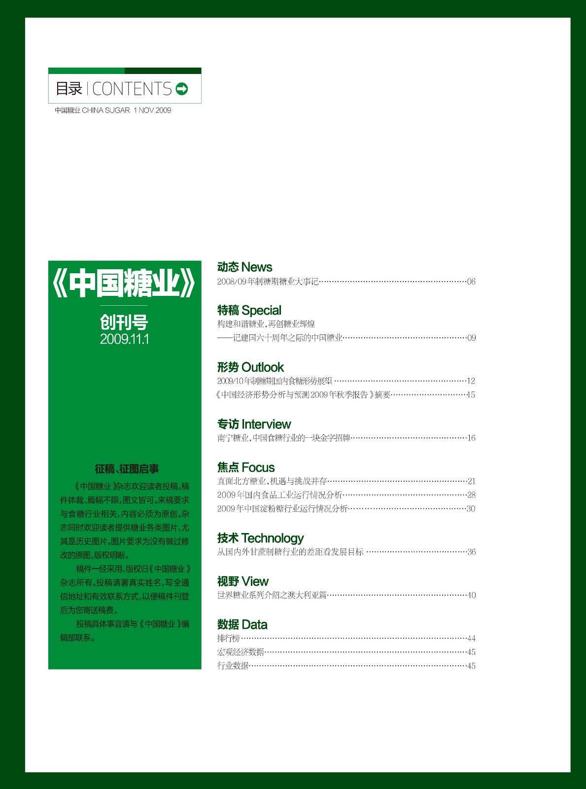 《中國糖業(yè)》由中國糖業(yè)協(xié)會主辦,是面向各級政府主管部門、中國糖業(yè)協(xié)會會員單位的內(nèi)部刊物。《中國糖業(yè)》為雙月刊,以正確引導(dǎo)輿論方向,提供信息服務(wù)為宗旨,深入剖析評介行業(yè)發(fā)展趨勢、企業(yè)的改革與管理、糖業(yè)宏觀政策和產(chǎn)業(yè)未來規(guī)劃、行業(yè)重大熱點(diǎn)問題,并及時發(fā)布國際國內(nèi)市場動態(tài)、通報(bào)協(xié)會工作等,力爭通過形式多樣的深度報(bào)道,更具專業(yè)性、權(quán)威性、前瞻性的分析文章,引領(lǐng)廣大讀者及時、快捷的掌握行業(yè)動態(tài)和發(fā)展趨勢。為行業(yè)參與各方搭建信息溝通的橋梁,并為其提供全面、細(xì)致、專業(yè)、權(quán)威的信息服務(wù)。